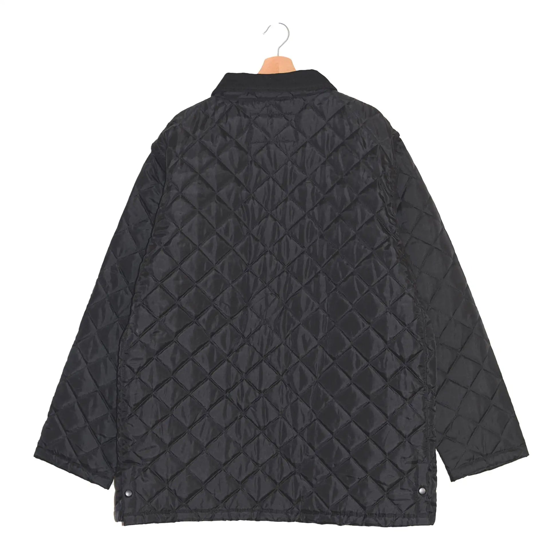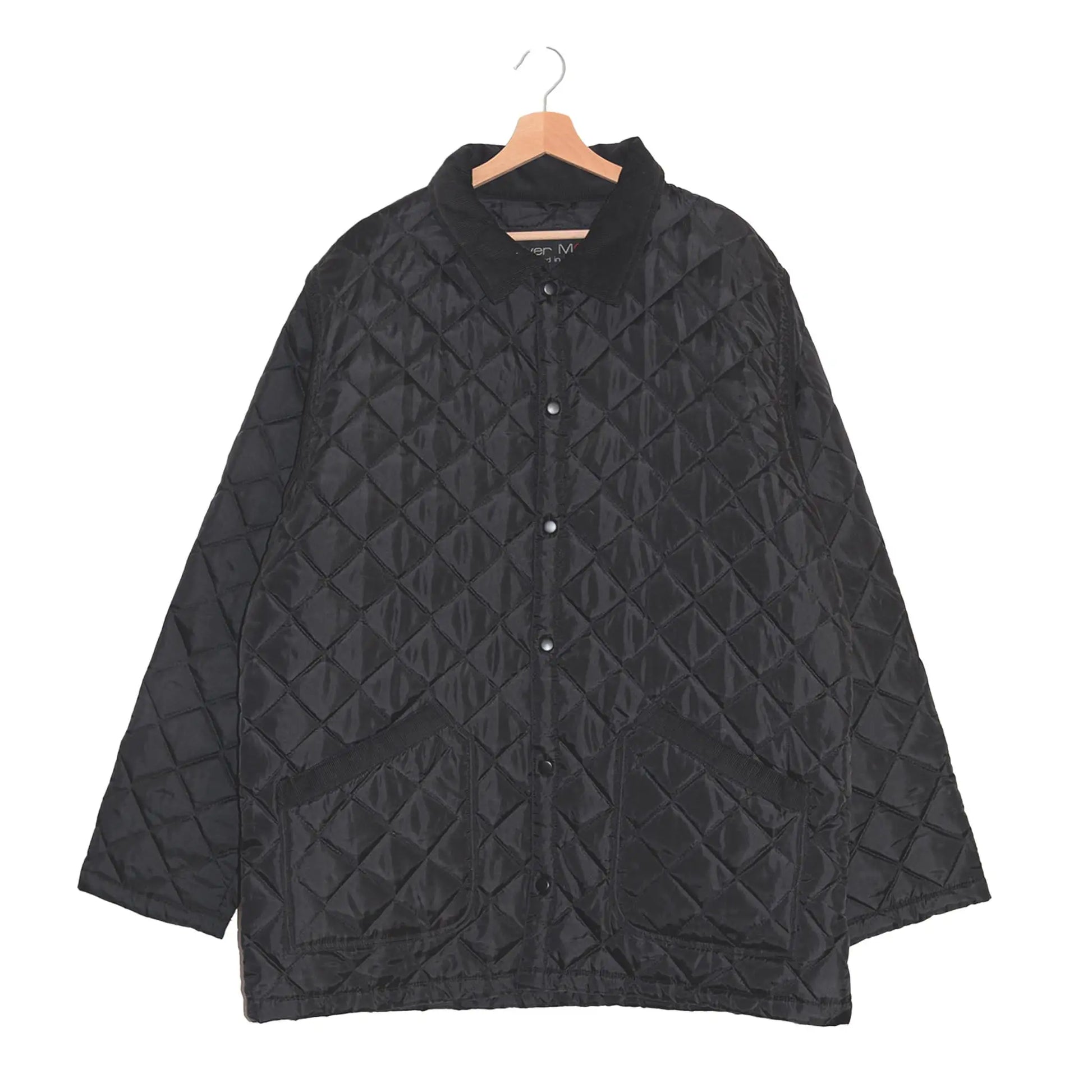 Questa quilted jacket nera in taglia XXL riprende il tradizionale motivo trapuntato a rombi e lo arricchisce con un dettaglio particolare: le maniche rimovibili con zip, che permettono di trasformarla in un gilet a seconda delle esigenze. Il colletto in velluto a coste e le tasche frontali applicate ne rafforzano l’ispirazione british, rendendola funzionale ma allo stesso tempo raffinata. Un capo ideale per le mezze stagioni, che unisce comfort, stile e versatilità.
